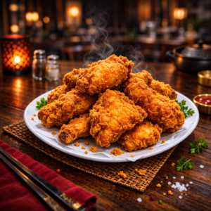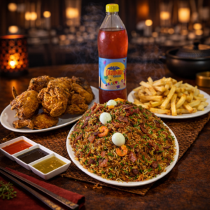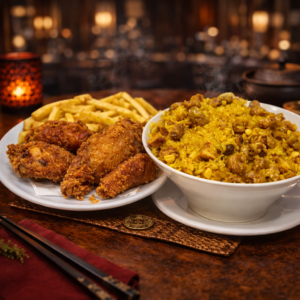 -Arroz ranchero. -Alitas BBQ. -Papa francesa. -Gaseosa.