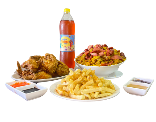 Arroz ranchero, 1 pollo, papas a la francesa y gaseosa 1.5 Lt